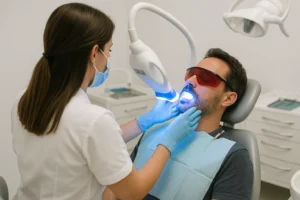 Tratamiento profesional para aclarar varios tonos el color de los dientes y lograr una sonrisa radiante.